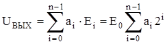 В общем случае для n-разрядного входного кода результирующее выходное напряжение ЦАП определяется по выражению