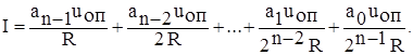 где Uоп—опорное (эталонное) напряжение; a0, a1,…,an-1,—коэффициенты двоичных разрядов, принимающие значения «0» или «1»; n—число двоичных разрядов;
