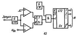 Число импульсов, попавших в измерительный интервал Tx, фиксируется счетчиком и выдается как цифровой эквивалент преобразуемого сигнала (рис.6, б). При этом соотношение между кодом и входным сигналом имеет следующий вид: