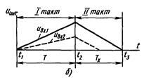 Начиная с момента времени t2 счетчик вновь заполняется импульсами с генератора импульсов ГИ, а напряжение на выходе интегратора (см. рис.7, б) уменьшается по закону