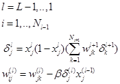Алгоритм обратного распространения ошибки опишем для многослойной сети, имеющей входной слой l=0.