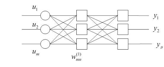 Сети обратного распространения получили свое название из-за используемого алгоритма обучения, в котором ошибка распространяется от выходного слоя к входному, то есть в направлении противоположном направления сигнала. Нейронная сеть обратного направления состоит из нескольких слоев нейронов, причем каждый нейрон предыдущего слоя связан с каждым нейроном последующего слоя. Рассмотрим двухслойную нейронную сеть.