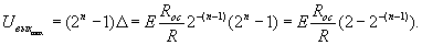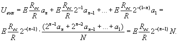 Итак, напряжение на выходе, соответствующее единицам отдельных разрядов двоичного числа в регистре, пропорционально весовым коэффициентам разрядов. При n-разрядном регистре, обозначив цифры разрядов двоичного числа
