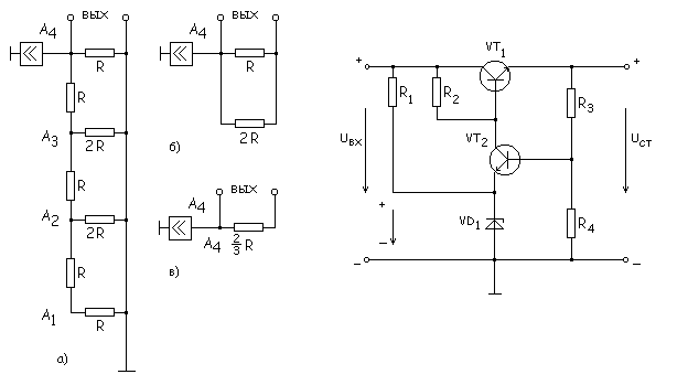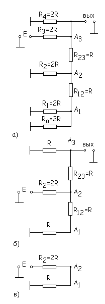 , если соответствующий разряд регистра содержит единицу. При передаче напряжения между этими точками напряжение делится на два и, следовательно, выходное напряжение