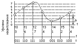 заменяется ближайшим к нему уровнем квантования с номером 3, в тактовый момент