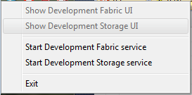 Рисунок 5.3. Сообщения, отображаемые нажатии правой кнопкой мыши по значку Development Fabric в области уведомлений панели задач.