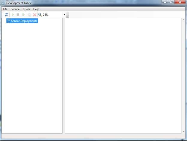· Выберите ПрограммыWindows Azure SDKDevelopment Fabric для запуска службы Development Fabric и его пользовательского интерфейса DFUI.exe