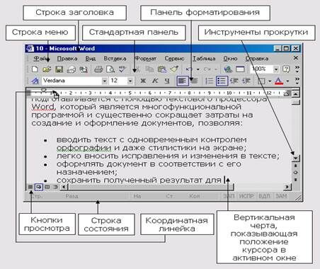 Основной экран Word представляет возможности для ввода текста документа, оформления и редактирования и содержит элементы, общие для всех приложений Office.