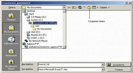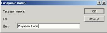 На диске укажите папку, где будет храниться информация. Если такая папка отсутствует, создайте ее, нажав кнопку Создание папки. В результате появится диалоговое окно Создание папки (рис. 5).