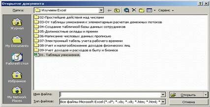 - нажатие кнопки Открыть стандартной панели инструментов;
