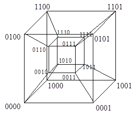 Вычислительная система Intel iPSC (1985) [6]. Модификация системы d5 – система на 32 узла – пятимерный куб, d7 – система на 128 узлов – семимерный куб. Для примера приведем (рис. 1.8) схему четырехмерного куба (d4 - 16 узлов).