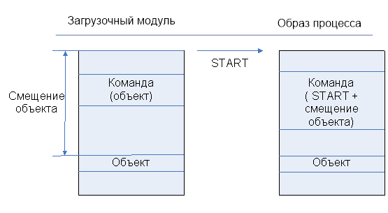 При загрузке пересчитываются адресные поля команд ,использующих абсолютную адресацию.