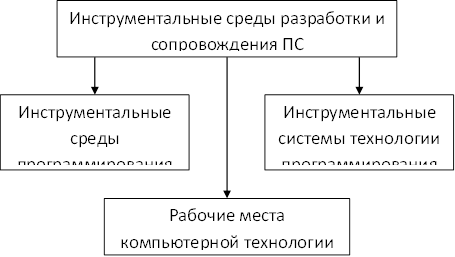 Компьютерная поддержка процессов разработки и сопровождения ПС может производиться не только за счет использования отдельных инструментов (например, компилятора), но и за счет использования некоторой логически связанной совокупности программных и аппаратных инструментов. Такую совокупность будем называть инструментальной средой разработки и сопровождения ПС.
