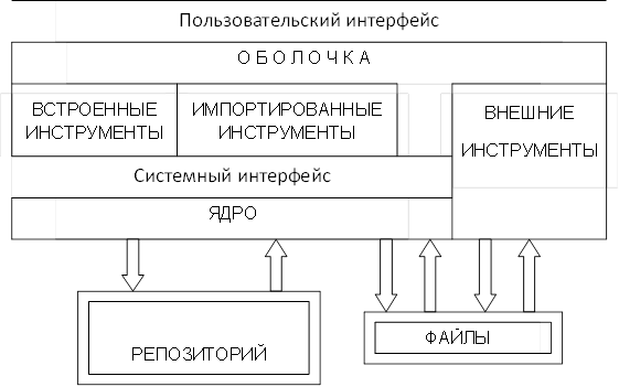 Инструментальная система поддержки проекта - это открытая система, способная поддерживать разработку ПС на разных языках программирования после соответствующего ее расширения программными инструментами, ориентированными на выбранный язык. Набор инструментов такой системы поддерживает разработкой ПС, а также содержит независимые от языка программирования инструменты, поддерживающие разработку ПС (текстовые и графические редакторы, генераторы отчетов и т.п.). Кроме того, он содержит инструменты расширения системы. Ядро такой системы обеспечивает, в частности, доступ к репозиторию.