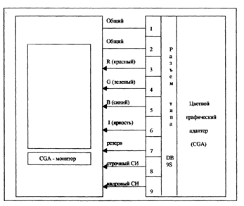 Рис.1. Схема подключения CGA-монитора к адаптеру.