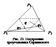 Следует отметить, что небольшое число начальных точек qk все-таки может попасть в запретные области. В частности, это случится при выборе точки q0 в центре треугольника p1 p2 p3 .