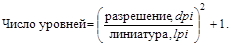 Тоновый диапазон, линиатура растра и разрешающая способность печатающего устройства связаны следующим соотношением:
