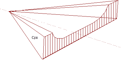 Анализ полученных формул показывает, что в обл.1. треугольного крыла со сверхзвуковыми кромками при одинаковом числе М и a коэффициент ср по абсолютной величине больше, чем у крыла бесконечного размаха.