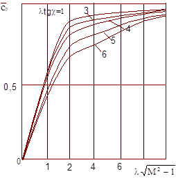 крыла конечного размаха. Чем меньше l, тем меньше площадь сверхзвуковой области 1 по отношению ко всей площади, тем меньше будет значение