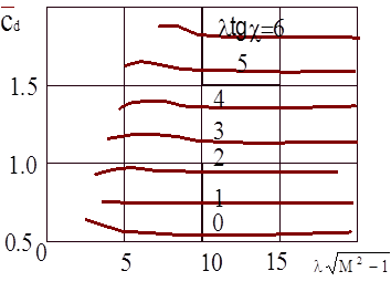 Сопротивление крыльев при М>1, так же как и при M<1 определяется по формулам