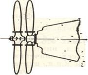 Из-за наличия у тяжелых самолетов с ТВД указанных особенностей достаточно широкое применение на них получили соосные воздушные винты. Соосные винты, как уже было указано, представляют собой комбинацию из двух расположенных друг за другом одинаковых винтов, вращающихся вокруг одной оси в противоположных направлениях (рис.4.15). Отличаются винты только тем, что угол установки заднего винта