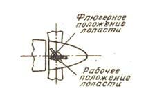 Для уменьшения сопротивления винтов предусматривается постановка лопастей во флюгерное положение (рис.4.17), то есть на углы установки лопастей