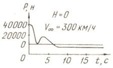 Наибольшую опасность представляет отказ двигателя на взлете, на этом же режиме наиболее актуальна необходимости автоматического флюгирования. На рис. 4.18 показано измене при автоматическом флюгировании его лопастей для самолета Ан-12 после отказа двигателя, работавшего на режиме номинальной мощности. Видно, что через 4...6 с после начала флюгирования тяга после колебания, вызванного увеличением угла установки лопастей, стабилизируется на небольшой отрицательной величине, соответствующей флюгерному положению лопасти.