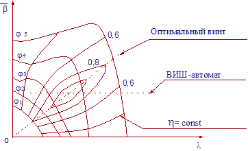 =const. Эти винты не обеспечивают максимально возможного к.п.д. на всех режимах полета, но они значительно лучше по к.п.д., чем винты ВФШ.