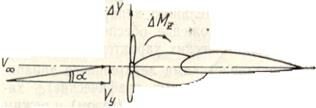 При наличии угла атаки самолета за счет составляющей скорости Vy, перпендикулярной оси винта, создается нормальная сила