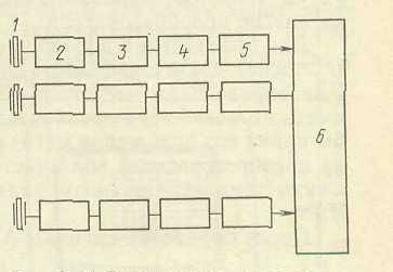 Блок обработки сигналов 5 производит счет принимаемых каналом сигналов за все время испытаний или за короткий интервал времени (например, 0,1 с) и выполняет их анализ. Аналогичную обработку сигналов по всем каналам выполняет блок 6. В анализ сигналов входит исследование их амплитудного распределения, снятие амплитудно-частотных характеристик. Для анализа используют быстродействующие ЭВМ. Применяют звуковую и световую сигнализацию при превышении определенного уровня амплитуды, активности или эффективного значения.