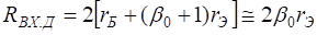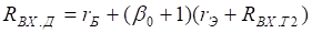 Важным параметром ДУ является входное сопротивление для дифференциального сигнала RВХ.Д или просто входное сопротивление RВХ. Это сопротивление со стороны одного из входов ДУ при заземленном другом входе. Если заземлить вход 2 (рис. 3.6.1), то эмиттерная цепь транзистора Т1 будет нагружена на входное сопротивление транзистора Т2, включенного по схеме ОБ. Входное сопротивление такого каскада при одинаковых параметрах