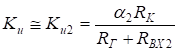 Коэффициент усиления каскодной схемы, считая коэффициент передачи каскада ОК близким к единице,описывается выражением: