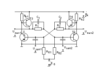 Когда отперт и насыщен транзистор Т2, то Т1 заперт только в том случае, если напряжение на эмиттерах |U"э| превышает по абсолютному значению напряжение на базе |Uб1| Это условие выполняется подбором сопротивлений плеч делителя R1 –R2 и тока насыщения транзистора Т2.