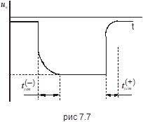Напряжение на коллекторе открывающегося транзистора (Т2) достигает значения ик2 ≈ 0 постепенно (рис. 7.7) из-за того, что его коллекторный ток нарастает экспоненциально.