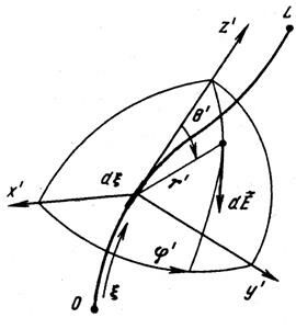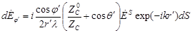 – орт сферической системы координат. Результирующее поле определяется путем геометрического суммирования (интегрирования) полей всех элементарных участков: