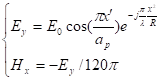 Здесь напряженность электрического поля в точке рупора с координатами  причем .