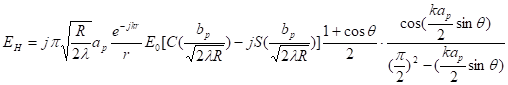 плоскостного рупора, для нахождения амплитуды поля необходимо вычислить модуль комплексных величин, определяемых выражениями (2) и (3). Диаграмма направленности