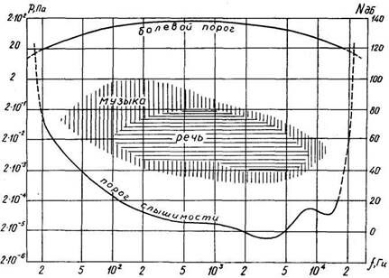 Не всякие переменные давления воспринимаются слухом как звук: существуют определенные границы слухового ощущения как по величине давления, так и по его частоте (являющихся в данном случае параметрами раздражения).