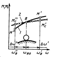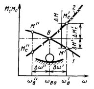 Устойчивость равновесного режима работы двигателя определяется дисбалансом ΔМ крутящего момента двигателя и момента потребителя при данном отклонении Δω угловой скорости и оценивается отношением