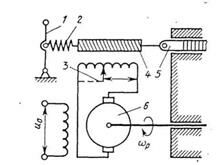 Рис.5.4 Схема электрического регулятора прямого действия: 1 - задатчик, 2 - пружина;