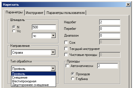 Тип обработки. Этот параметр влияет на выбор инструмента из базы данных.