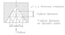 Двустороннее смещение (боковое двустороннее врезание) - получение резьбы методом смещенной подачи.