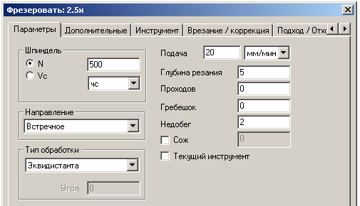 Закладка Дополнительные параметры ТП "Фрезеровать 2.5X"