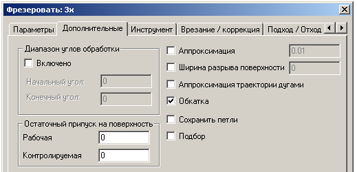 Аппроксимация — устанавливает точность аппроксимации кривых и поверхностей при выполнении данного технологического перехода. По умолчанию эта величина равна 0.01 мм.