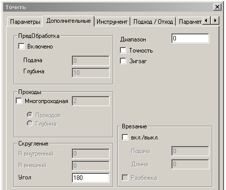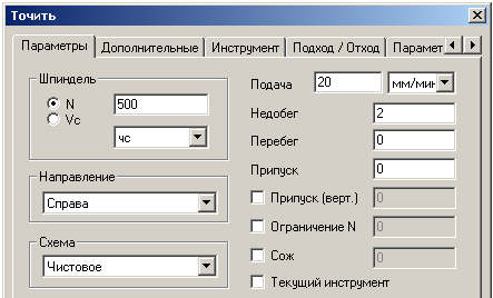 Рассмотрим параметры, отличающиеся от перехода «Точить »
