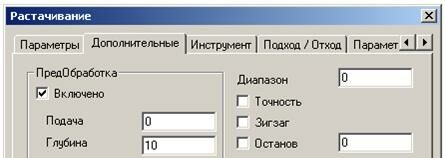 В группе задаются: Включено – предварительное снятие дефектного слоя; Подача – подача обработки дефектного слоя; Глубина – глубина обработки дефектного слоя.