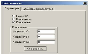 В системе реализовано три способа задания положения начала цикла (НЦ): номером системы координат, номерами корректоров и значениями координат по каждой оси.