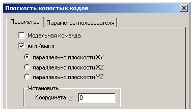 вкл./выкл. Чтобы задать положение плоскости холостых ходов, поставьте флажок вкл./выкл. . Если флажок не установлен, то плоскость холостых ходов считается выключенной. В этом случае, инструмент будет перемещаться на холостом ходу от одного КЭ к другому по кратчайшему расстоянию.