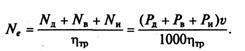 где величина ge выражена в г/(кВт-ч), Ne — в кВт, a v — в м/с.