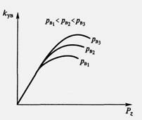 Коэффициент сопротивления уводу колеса зависит от размеров и конструкции шины, давления воздуха в ней и вертикальной нагрузки на колесо. Так, при увеличении размеров шины и давления воздуха в ней коэффициент сопротивления уводу возрастает. При увеличении вертикальной нагрузки на колесо он сначала растет, а затем уменьшается (рис. 12.6). Для шин грузовых автомобилей и автобусов значения этого коэффициента составляют 30... 100 кН/рад, а для шин легковых автомобилей — 15...40 кН/рад. От значения коэффициента сопротивления уводу во многом зависит боковое скольжение колеса. Чем меньше этот коэффициент, тем раньше начинается боковое скольжение.